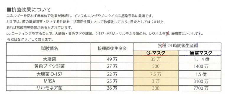 G-MASKはあらゆる菌に有効値をクリアしております。